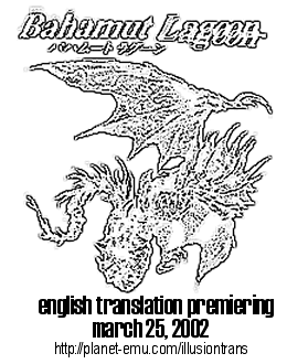 Nu är en av de tre Bahamut Lagoon-översättningarna släppta. Detta är Ilusion Translations översättning och det är troligtvis den sämsta av de tre. Patchen är fortfarande 96% klar och är fortfarande beta, så bli inte så överraskade om ni hittar fel och buggar lite här och där.